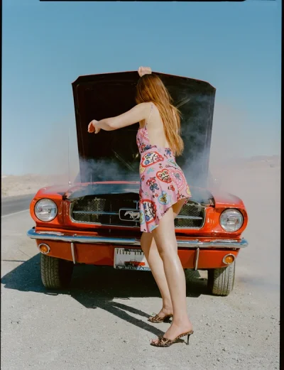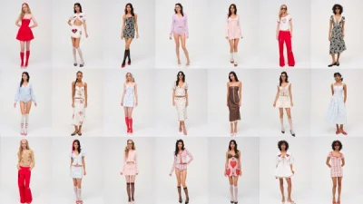 This Valentine’s Day, we’re hitting the road—destination: Las Vegas. Our newest ready-to-wear collection is all about celebrating the luck and love in our lives, and making playful pit stops along the way. Each piece is like a postcard from a bygone era; little love letters to the kitschy charm of old motels, romantic dinners, and dazzling neon-lit nights along the Vegas strip. Think ‘50s-inspired daytime silhouettes—darling ginghams, playful polka dots, cherry prints, and our signature florals. For the evening, dazzle in bead-embellished dresses with Vegas motifs